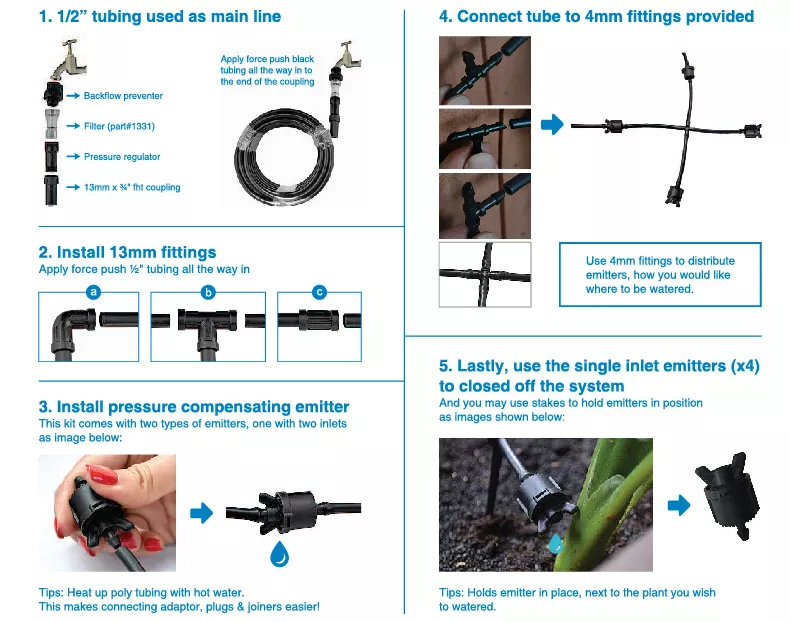 Einfache Installation: Konzipiert für die DIY-Einrichtung mit flexiblen Schläuchen, Emittern und Anschlüssen.