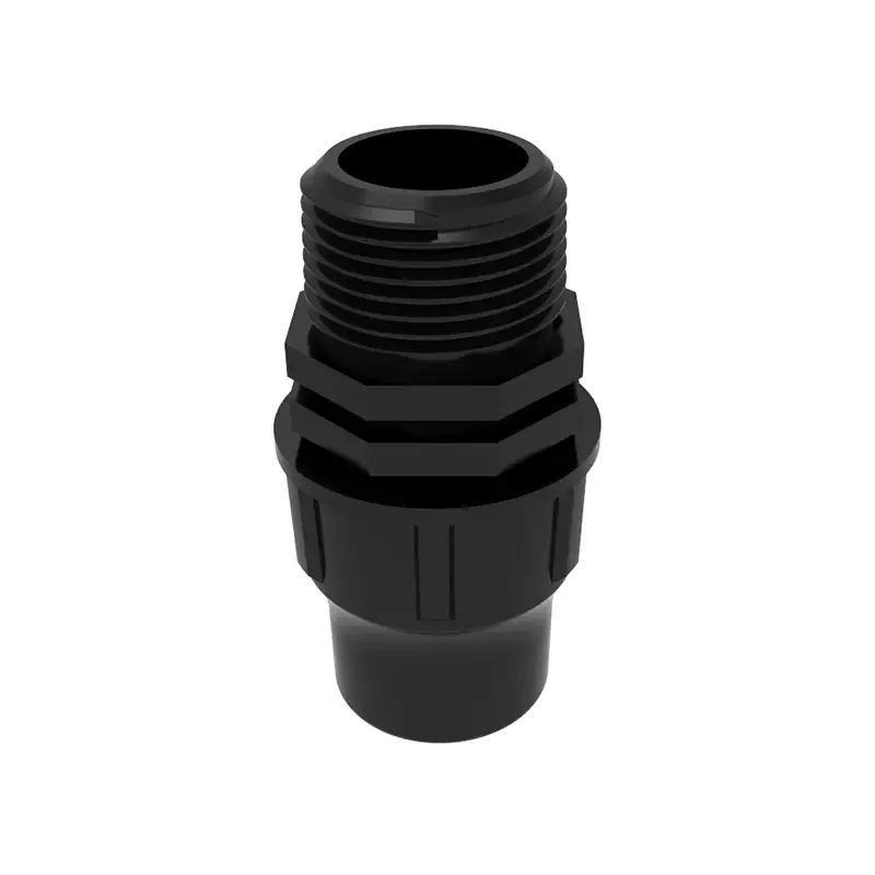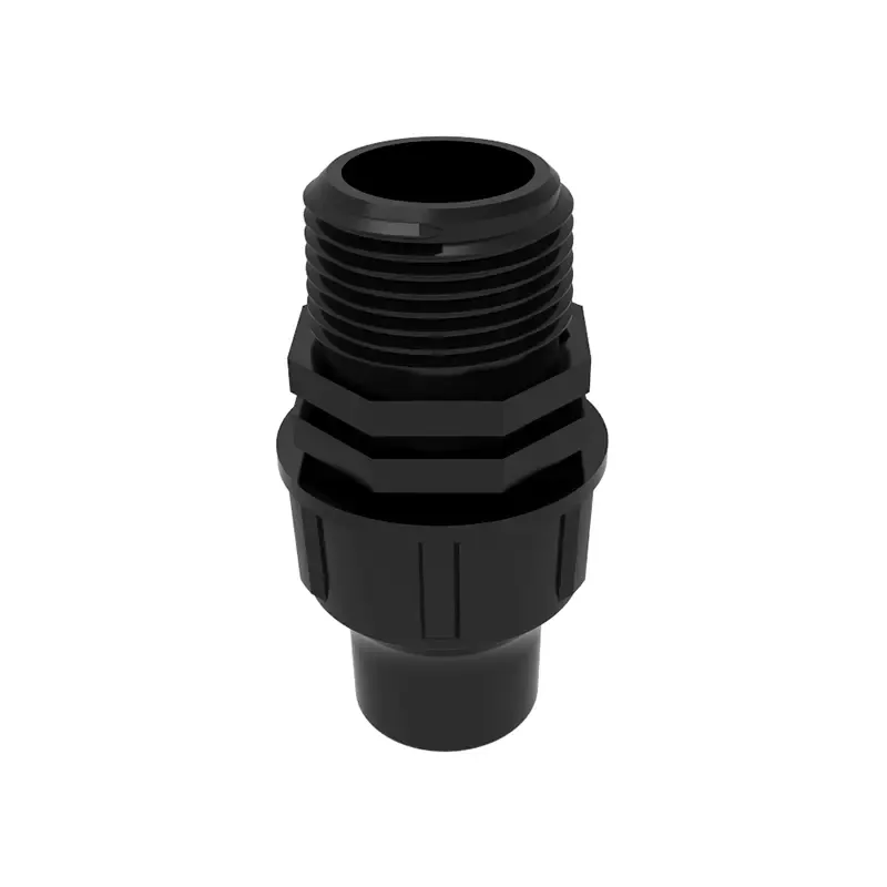 1、Gewindeverriegelungsdesign zur sicheren Befestigung von PE-Rohren und Formstücken, um eine Trennung unter hohem Druck zu verhindern.