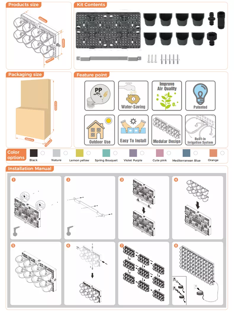 Unser DIY Expandable Green Wall Kit ist ein modernes und wartungsarmes vertikales Gartenset, das für STÄDTEGÄRTEN entwickelt wurde, die in kleinen Räumen ohne viel Grundfläche leben.