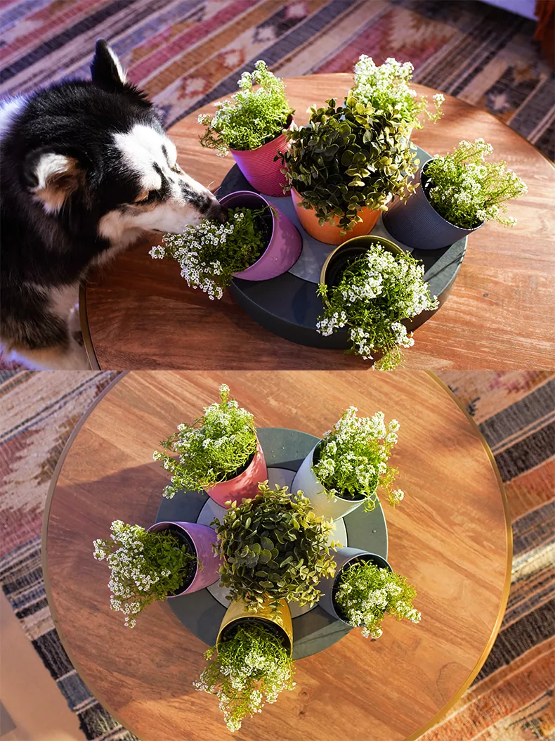 Der Pflanzkasten in der Mitte des Tisches ermöglicht das Hinzufügen von Pflanzen oder Kräutern