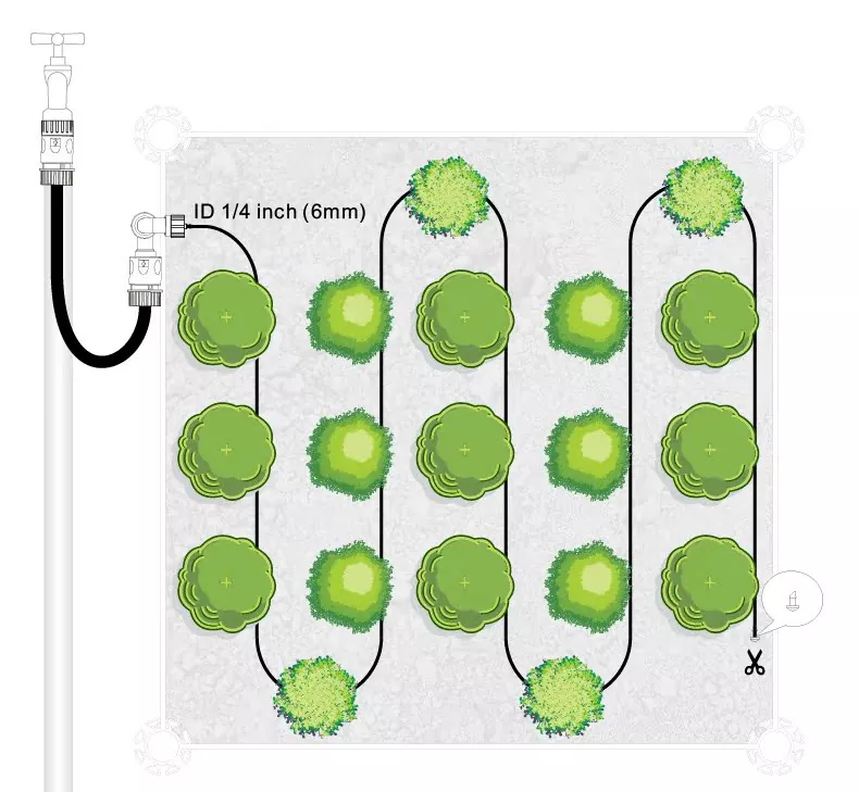 Egal, ob es sich um ein Topfpflanzenbeet auf dem Balkon, einen kleinen Gemüsegarten im Innenhof oder einen Blumenanbaubereich auf dem Dach handelt, das GARTENBETT-SOAKER-SCHLAUCH-KIT ist für alles geeignet, der 5-Meter-Schlauch kann frei geschnitten werden. Wenn Sie mehr Reihen verlegen möchten, können Sie es auch durch einen Dreifachverbinder erweitern. Wenn Sie später die Länge erhöhen oder Zubehör hinzufügen möchten, können Sie es direkt an dasselbe Modell anschließen, ohne sich Gedanken über Kompatibilitätsprobleme machen zu müssen.