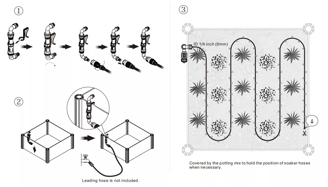 Es sind keine komplizierten Werkzeuge erforderlich, es ist nicht nötig, die Bedienungsanleitung zu lesen, die 5 Meter lange SCHLAUCHlänge des GARDEN BED SOAKER HOSE KIT ist genau richtig für die meisten Familienbeete. Egal, ob es sich um ein langes Gemüsebeet oder einen quadratischen Pflanzkasten handelt, er kann direkt nach dem Verlegen genutzt werden. Die Drei-Wege-Stecker und Adapter sind alle vorab abgestimmt. Richten Sie sie einfach an den Schnittstellen aus, stecken Sie sie ein und schrauben Sie sie fest, um sie zu befestigen. Sogar Mädchen können es selbstständig fertigstellen. Der gesamte Bewässerungsaufbau kann in nur 10 Minuten abgeschlossen werden.