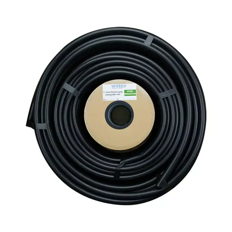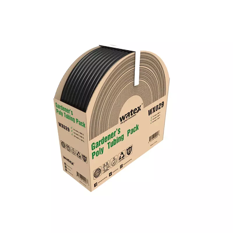 Die PE/PVC-Wasserversorgungsrohrserie ist langlebig und dennoch flexibel und in den Innendurchmessern 4 mm, 13 mm, 19 mm und 25 mm erhältlich. Es lässt sich leicht abrollen und flach hinlegen, ohne dass es sich verheddert, was es ideal für die Planung von Rohrleitungsrouten von der Wasserquelle und die Auswahl der geeigneten Rohrgröße basierend auf den erforderlichen Durchflussraten macht. Es ist mit Watex-Fittings und Rohrschellen kompatibel und ermöglicht schnelle und werkzeuglose Verbindungen für eine problemlose Installation. Das Ende kann an 4-mm-Bewässerungskapillarrohre angeschlossen werden, wodurch es sich gut für Standard-Niederdruckbewässerungssysteme eignet.