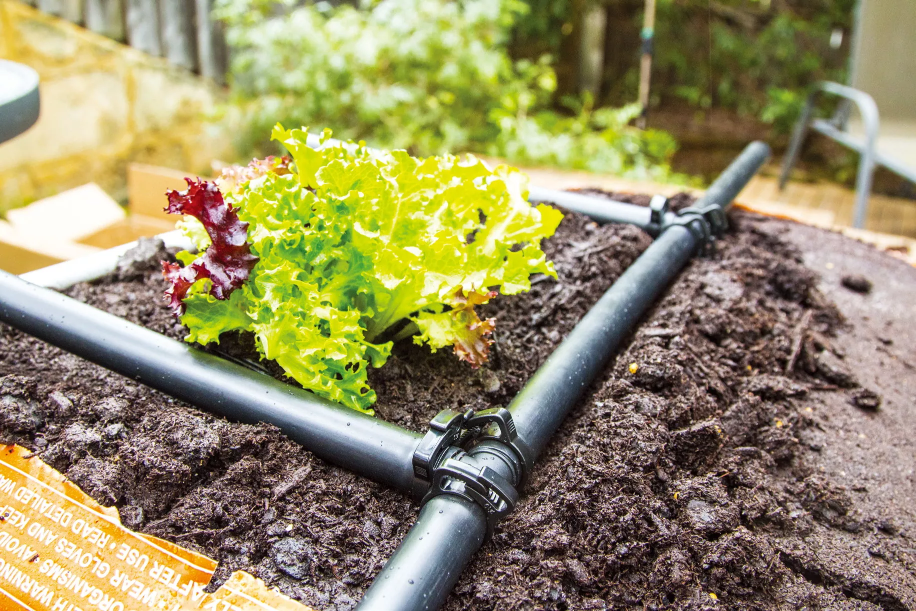 Wasserzulauf vom Pop-up-System zum Tropfbewässerungssystem