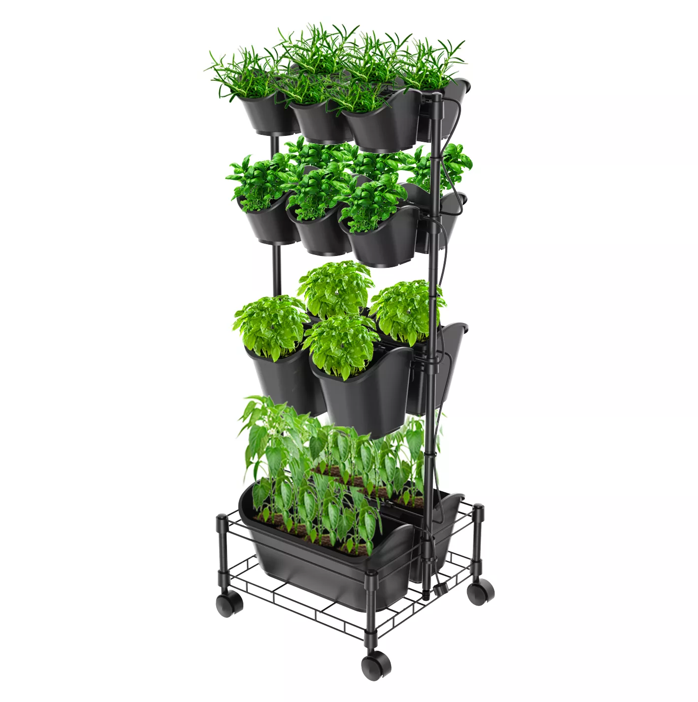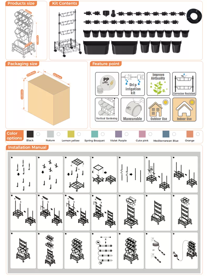 Unser mobiler grüner Wand-Doppelrahmen aus Metall passt perfekt zum Stadtleben und ist Ihr Freund für alle Ihre städtischen Gartenbedürfnisse. Die Tragbarkeit dieses mehrstufigen Pflanzgefäßes mit komplettem Bewässerungssystem macht es ideal für platzsparende Gartenarbeit. Bauen Sie Ihre Lieblingskräuter, Gemüse oder Blumen an oder fügen Sie einige luftreinigende Pflanzen hinzu, um die Luft in Ihrem Zuhause zu reinigen, und bringen Sie sie überallhin mit.