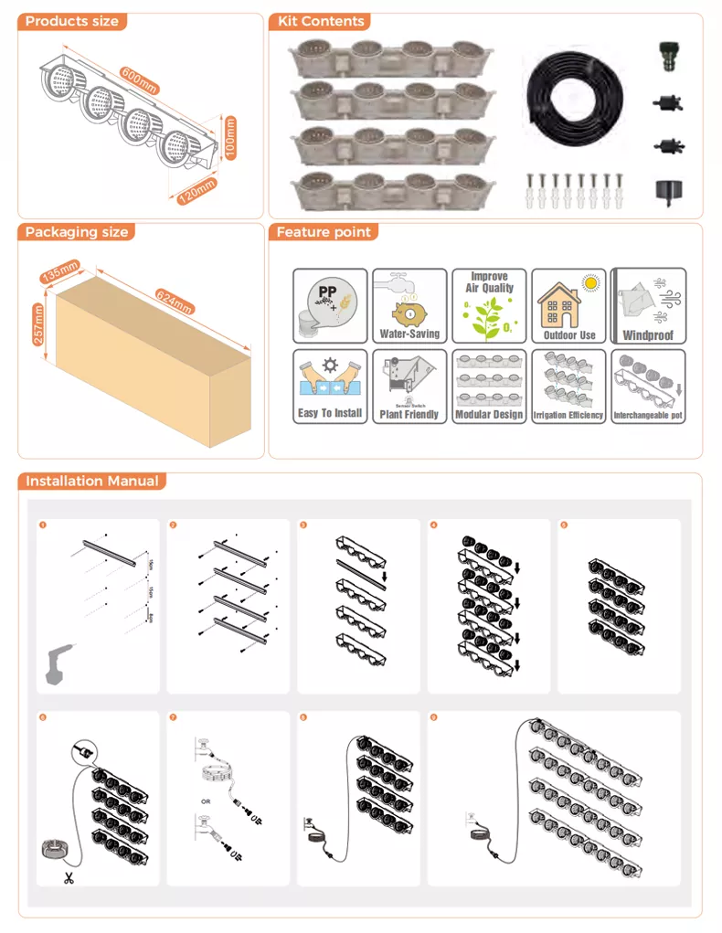 Watex ist ein Hersteller und Lieferant, der sich auf Vertical Gardening Start-Kits spezialisiert hat. Dieses My Design Vertical Gardening Start-Kit ist für unerfahrene Gärtner geeignet. Es ermöglicht die vertikale Bepflanzung an Wänden, sodass Benutzer ihre bevorzugten Grünpflanzen züchten können. Watex verfügt über 30 Jahre Erfahrung im Außenhandel in China. Das Unternehmen exportiert seine Produkte in Länder in Australien, Europa und in andere Regionen. Es ist ein vertrauenswürdiges Unternehmen