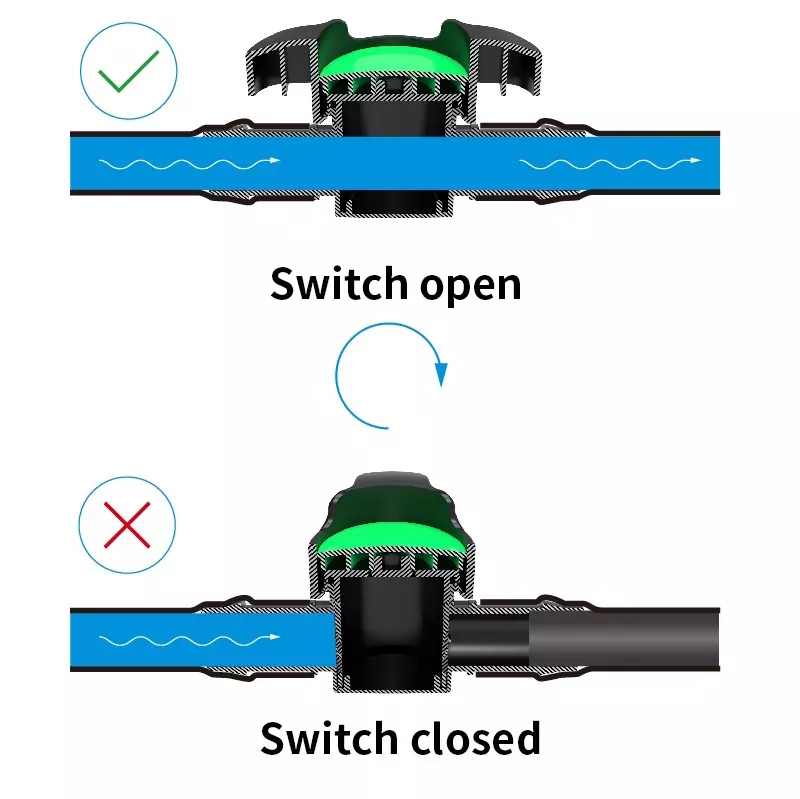 1、Das Ein-Aus-Inline-Ventil besteht aus hochwertigem, hochfestem Kunststoff (POM + modifiziertes PP) mit einem Anti-Aging-Design, das zuverlässige Haltbarkeit und lang anhaltende Leistung gewährleistet.
